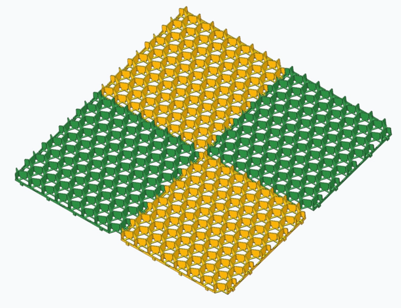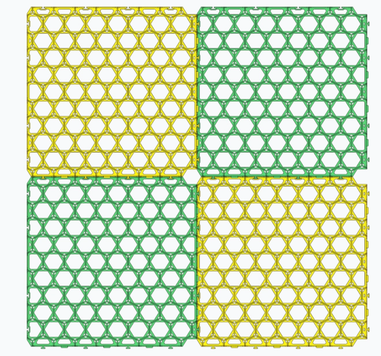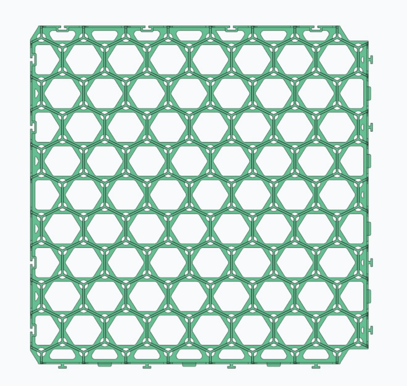 Z namenom optimizacije vgradnje, transporta in stabilnosti površin smo razvili novo dimenzijo travnih rešetk, ki omogoča hitrejšo montažo in manj spojev na površini.